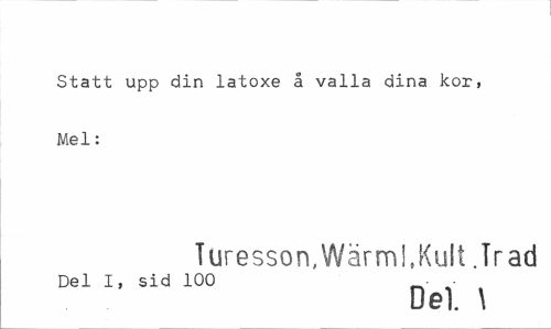 //// Statt upp din latoxe å valla dina kor, Mel: //// Turesson,Wärml,Kult .Trad //// Del I, sid 100 - ¦ //// Del. \ ////