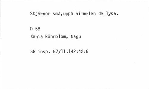 //// Stjärnor små,uppå himmelen de lysa. D 58 //// Xenia Rönnblom, Nagu SR insp. 57/11.142:42:6 ////