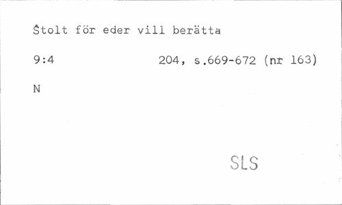 //// Stolt för eder vill berätta //// 9:4 204, s.669-672 (nr 163) //// N //// SLS ////
