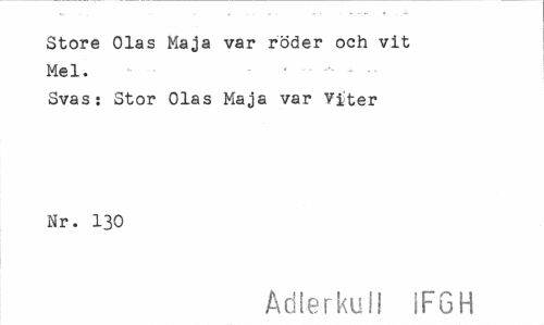 //// Store Olas Maja var roder och vit Mel. //// Svas: Stor Olas Maja var Yiter Nr. 130 //// Adlerkuil IFGH ////