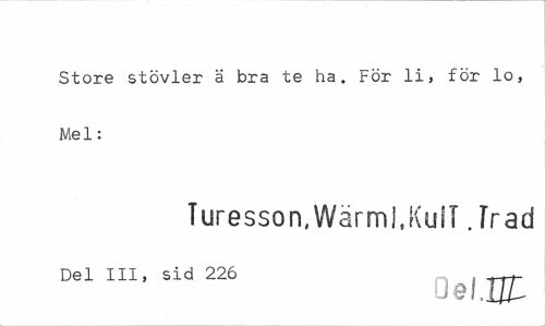 //// Store stövler ä bra te ha. För li, för lo, Mel: //// Turesson,Wärml.KuiT Jrad //// Del III, sid 226 ^^ //// 3el Ht ////