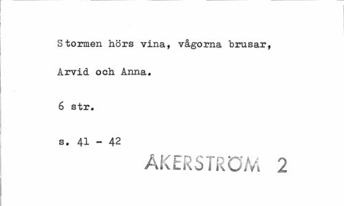 //// Stormen hörs vina, vågorna brusar, Arvid och Anna. //// 6 str. //// s. 41 - 42 //// ÅKERSTRÖM 2 ////