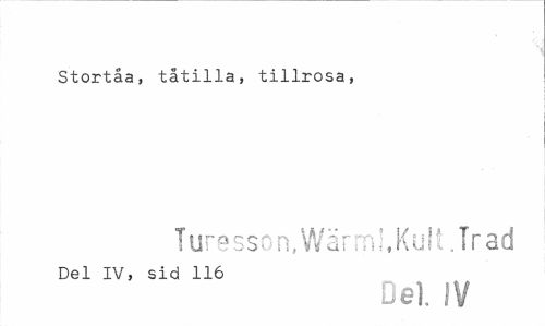 //// Stortåa, tåtilla, tillrosa, //// T ur e sso n, Wärm I.Kult .Trad //// Del IV, sid 116 //// Del. IV ////