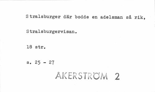 //// Stralsburger där "bodde en adelsman så rik, S t ralsburgervi san. 18 str. s. 25 - 27 //// ÅS ,f T r> rrn yv t a r% //// kcKohiOm 2 ////