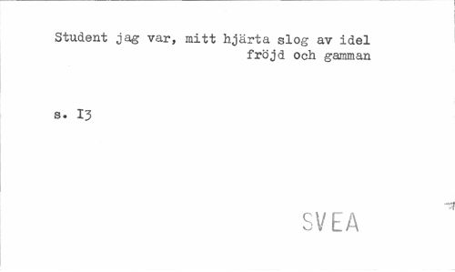 //// Student jag var, mitt hjärta slog av idel //// fröjd och gamman //// s. 13 //// SVEA ////