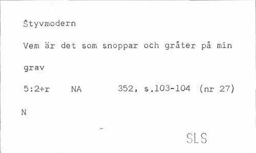 //// Styvmodern //// Vem är det som snoppar och gråter på min grav //// 5:2+r NA 352, s. 103-104 (nr 27) //// N //// SLS ////