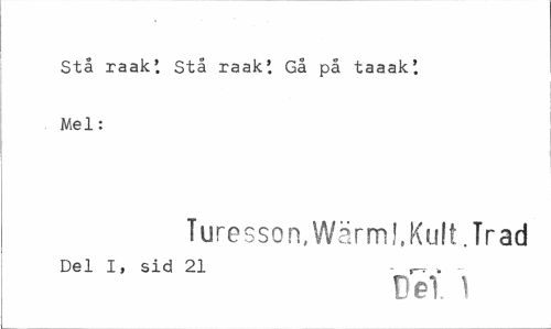 //// Stå raak' Stå raak', Gå på taaak' Mel: //// Turesson, Wärml. Kult. Träd //// Del I, sid 21 - r-- . - //// Del 1 ////