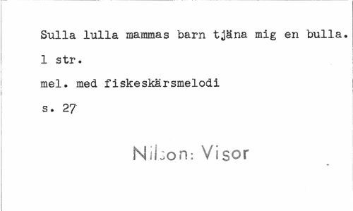 //// Sulla lulla mammas barn tjäna mig en bulla. 1 str. //// mel. med fiskeskärsmelodi s. 27 //// Nihon: Visor ////