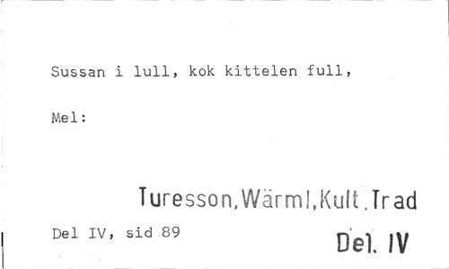//// Sussan i lull, kok kittelen full, Mel: //// Turesson. Wärm I,Kult. Ir ad //// i Del IV, sid 89 jy ////