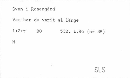 //// Sven i Rosengård //// Var har du varit så länge //// l:2+r BO 532, s.86 (nr 38) //// N //// •SLS ////