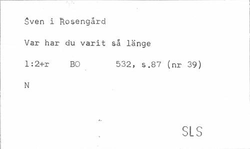 //// Sven i Rosengård //// Var har du varit så länge //// 1:2+r BO 532, s.87 (nr 39) //// N //// ~ SLS ////