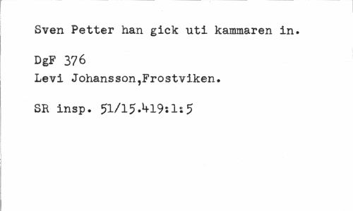 //// Sven Petter han gick uti kammaren in. DgF 376 //// Levi Johansson,Frostviken. SR insp. 51/15.if 19:1* 5 ////