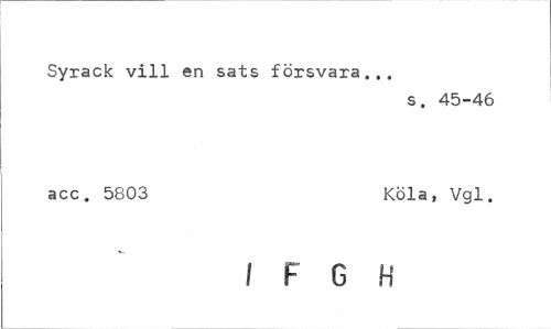 //// Syrack vill en sats försvara,,. //// s. 45-46 //// acc. 5803 Köla, Vgl. //// I F G H ////
