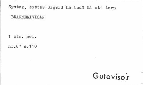 //// Systar, systar Sigrid ha bodä äi ett torp BRÄMERI VI SAN //// 1 str. mel. nr.87 s.110 //// G ut a visor ////