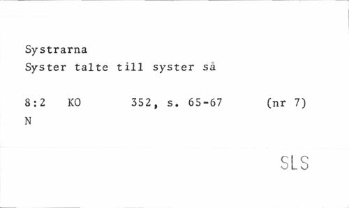 //// Systrarna //// Syster talte till syster sä //// 8:2 KO 352, s. 65-67 (nr 7) //// N //// SLS ////