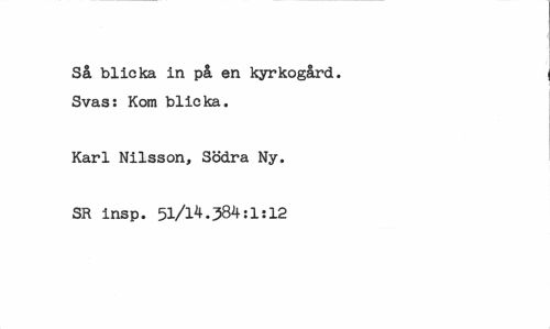 //// Så blicka in på en kyrkogård. Svas: Kom blicka. //// Karl Nilsson, Södra Ny. //// SR insp. 51/1*.384:1:12 ////
