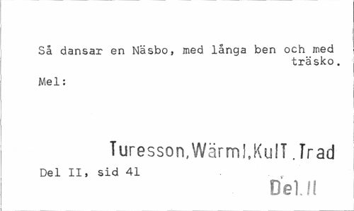 //// Så dansar en Näsbo, med långa ben och med //// träsko. //// Mel: //// Turesson, Wärml, Kull. Träd //// Del II, sid 41 //// Del.II ////