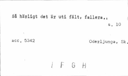 //// Så hHrligt it uti- mt, faiUsa., //// s. 10 //// acc. 5342 Odexljunga, Sk //// I F 6 H ////