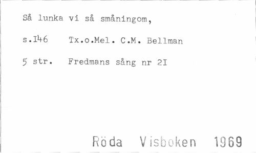 //// Så lunka vi så småningom, s. 1*4-6 Tx.o.Mel. C.M. Bellman 5 str. Fredmans sång nr 21 //// Röda Visboken 1989 ////