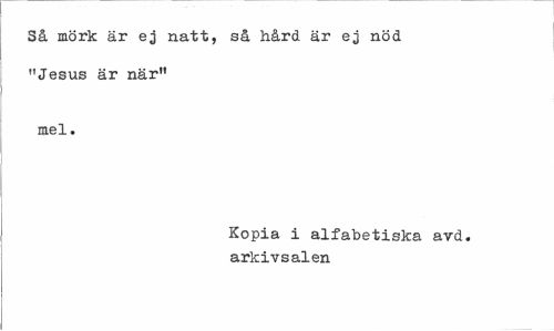 //// Så mörk är ej natt, så hård är ej nöd "Jesus är när" //// mel. //// Kopia i alfabetiska avd. arkivsalen ////