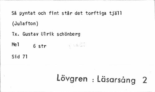 //// Så pyntat och fint står det torftiga tjäll (Julafton) //// Tx. Gustav Ulrik schönberg Me1 6 str Sid 71 //// Lövgren : Lösarsång 2 ////