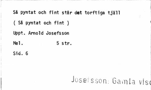 //// Så pyntat och fint står det torftiga tjäll //// ( Så pyntat och fint ) //// Uppt. Arnold Josefsson //// Mel. 5 str. //// Sid. 6 //// j //// Jose sson Gamla vis ////