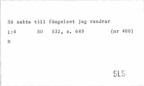 //// Så sakta till fängelset jag vandrar //// 1:4 BO 532, s. 649 (nr 400) //// N //// SLS ////