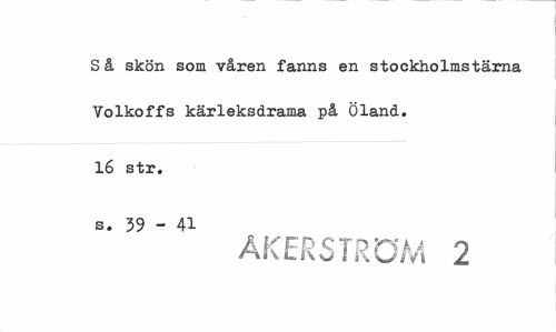 //// Så skön som våren fanns en stockholmstärna Yolkoffs kärleksdrama på Öland. //// 16 str. //// s. 39 - 41 //// ÅKERSTRÖM 2 ////