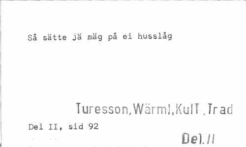 //// Så sätte jä mäg på ei husslåg //// Turesson,Wärml,KulT .Trad //// Del II, sid 92 //// Delll ////