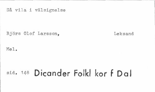 //// Så vila i välsignelse //// Björs Olof Larsson, Leksand //// Mel. //// sid. 148 Dicander Folkl kor f Dal ////