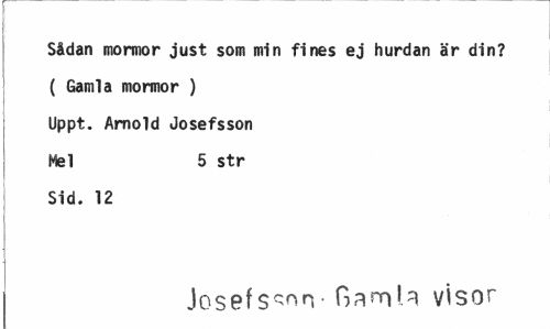 //// Sådan mormor just som min fines ej hurdan är din? //// ( Gamla mormor ) //// Uppt. Arnold Josefsson //// Mel 5 str //// Sid. 12 //// Josefs-nn• GamU visor ////