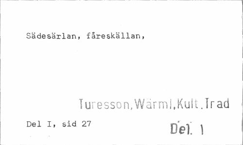 //// Sädesärlan, fåreskällan, //// Turesson, Wärml, Kult. Träd //// Del I, sid 27 g^y ^ ////