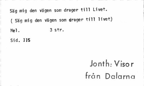 //// Säg mig den vägen som drager till Livet. ( Säg mig den vägen som drager till livet) Mel. 3 str. //// Sid. 115 //// Jonth: Visor //// från Dalarna ////