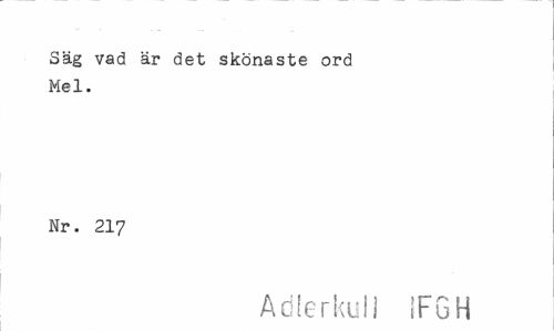 //// Säg vad är det skönaste ord Mel. //// Nr. 217 //// Adierkull 1F6H ////