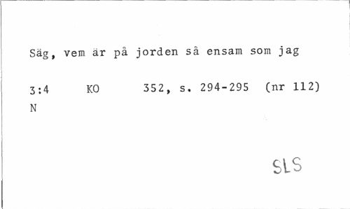//// Säg, vem är på jorden så ensam som jag //// 3:4 KO 352, s. 294-295 (nr 112) //// N //// SLS ////