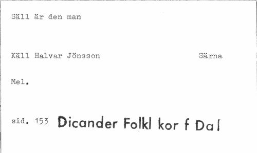 //// Säll är den man //// Käll Halvar Jönsson Särna //// Mel. //// sid. 153 Dicander Folkl kor f Da i ////