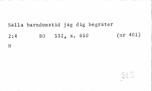 //// Salla barndomstid jag dig begråter //// 2:4 BO 532, s. 650 (nr 401) //// N //// SL S ////
