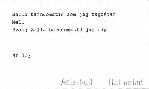 //// Sälla barndomstid som jag begråter Mel. //// Svas: Sälla barndomstid jag dig Nr 103 //// Adlerkull Halmstad ////