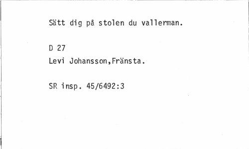 //// Sätt dig på stolen du vallerman. D 27 //// Levi Johansson,Fränsta. SR insp. 45/6492:3 ////