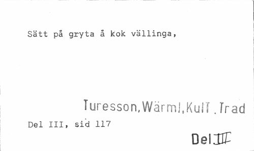//// Sätt på gryta å kok vällinga, //// Turesson, Wärml.KuiMrad //// Del III, sid 117 //// DelUT ////