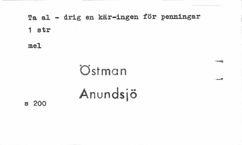 //// Ta al - drig en kär-ingen för penningar 1 str //// mel //// -"Q //// östman Anundsjö //// s 200 ////