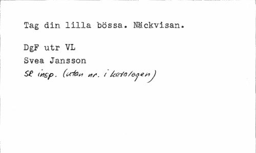 //// Tag din lilla bössa. Näckvisan. //// DgF utr VL Svea Jansson //// S£ insp. (odan as. t /cgt/G/cyev>J ////