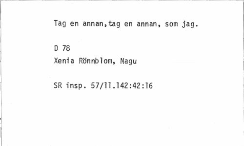 //// Tag en annan,tag en annan, som jag. D 78 //// Xenia Rönnblom, Nagu SR insp. 57/11.142:42:16 //// | ¦ ////