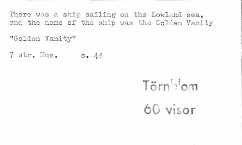 //// There was a ship sailing on the Lowland sea, and the name of the ship was the Golden Vanity //// "Golden Vanity" //// 7 str. Hus. s. 44 //// T" M //// 1 orn rom 60 visor ////