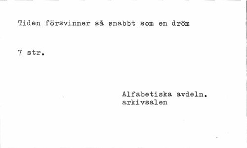 //// Tiden försvinner så snabbt som en dröm 7 str. //// Alfabetiska avdeln. arkivsalen ////