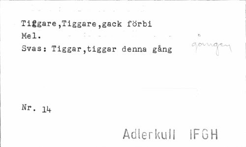 //// Tiggare,Tiggare,gäck förbi Mel. //// Svas: Tiggar,tiggar denna gång Nr. ii+ //// Ädle r ku 11 IF G H ////
