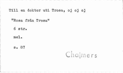 //// Till en doktor uti Trosa, oj oj oj //// "Rosa från Trosa" 6 str. mel. //// s. 87 //// Chalmers ////