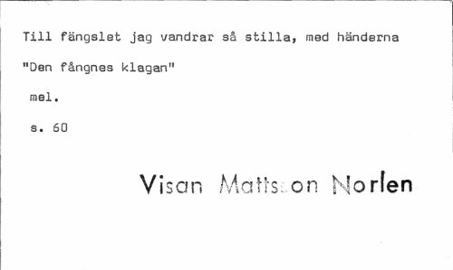 //// Till fängslet jag vandrar så stilla, med händerna "Den fångnes klagan" mel. s. 60 //// Visan Mattsson Mörten ////