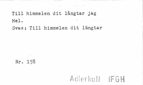 //// Till himmelen dit långtar jag Mel. //// Svasj Till himmelen dit längtar Nr. 158 //// Adierkull IFGH ////