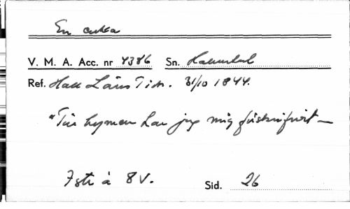 //// | _On^o-__ //// V. M. A. Acc. nr Sn. ... //// I Ref. ^^ ^^ ¦ V/<° //// 1 * /et* //// ^ ^ Sid. ^ ////
